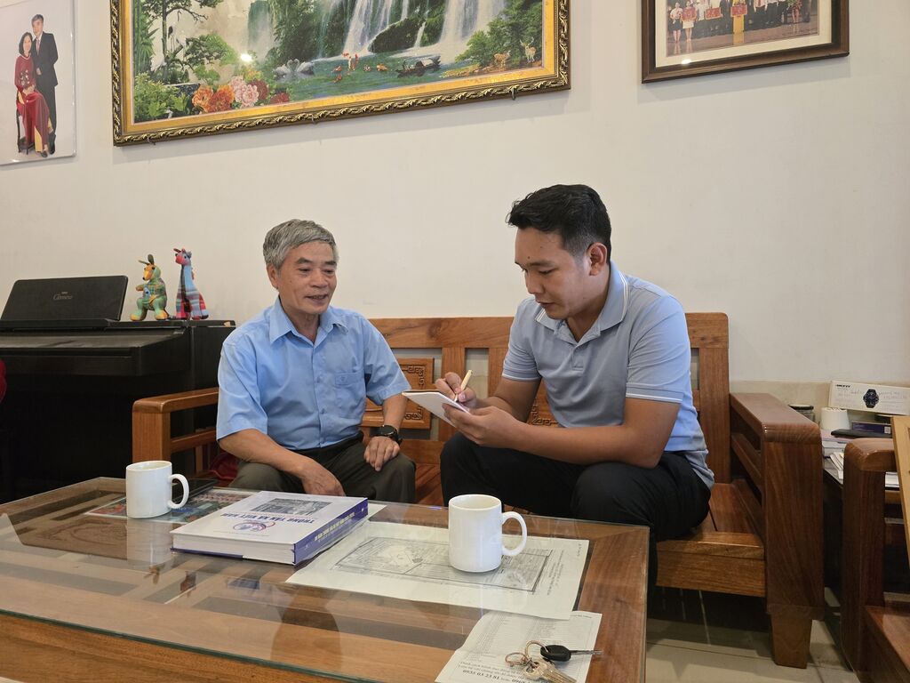 | Ông Trịnh Quang Dân chia sẻ với phóng viên trẻ về những kỷ niệm đáng nhớ trong suốt quá trình công tác. |