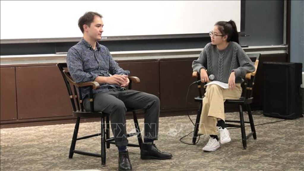 | Đạo diễn François Bibonne giao lưu với khá giả tại Đại học Harvard. |