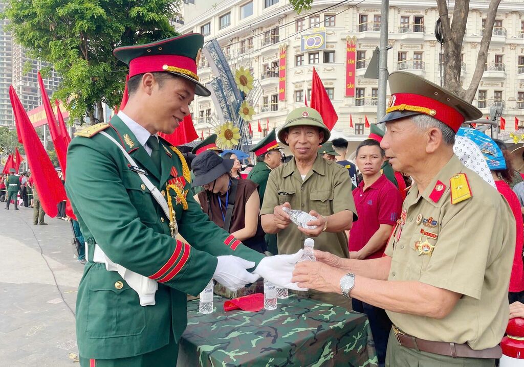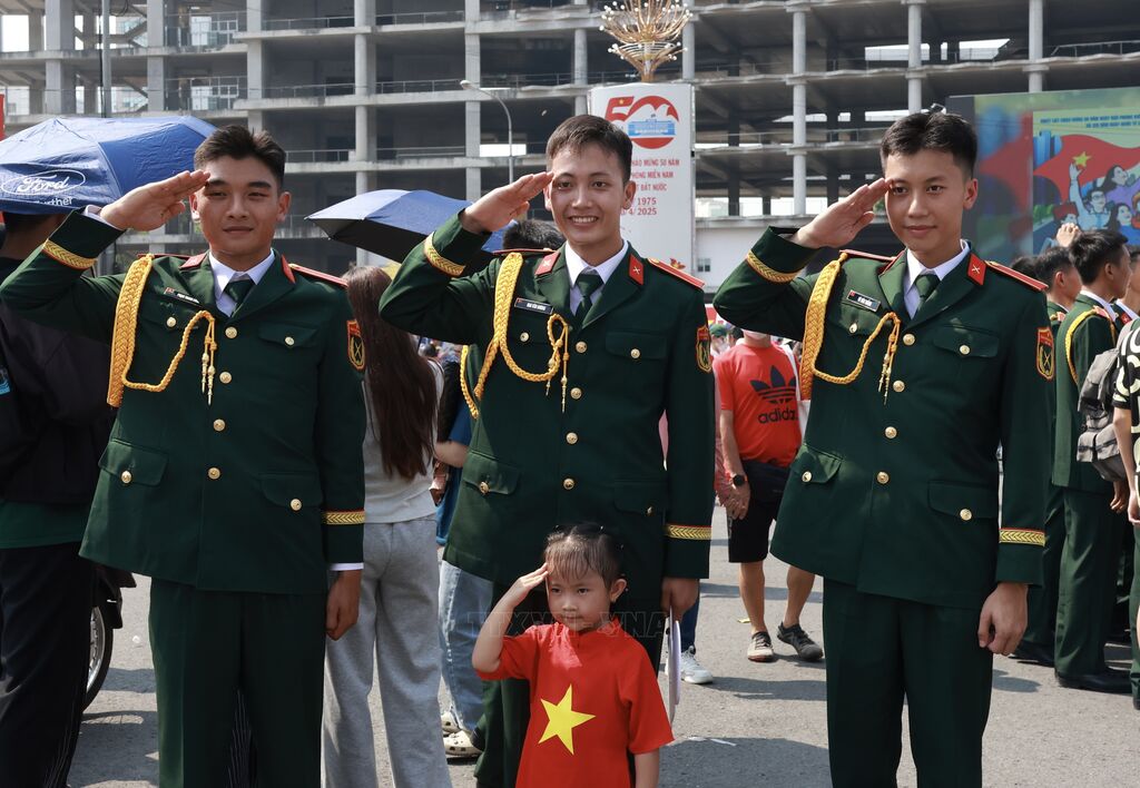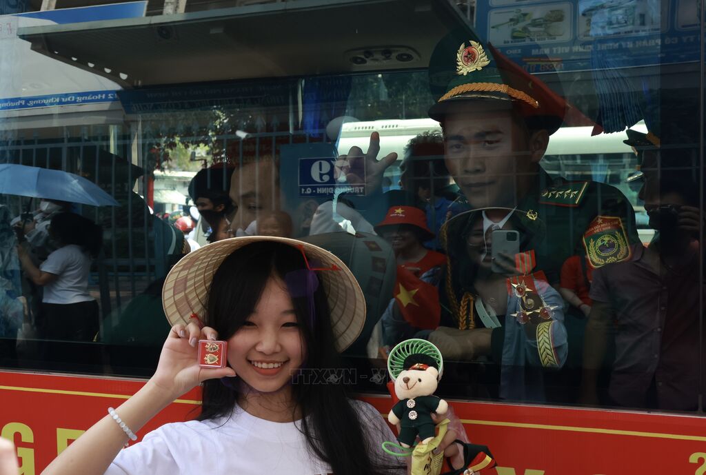 Sau khi kết thúc diễu binh, diễu hành qua lễ đài chính, các khối tiếp tục di chuyển qua các con phố. Người dân 2 bên đường chờ đón họ như người thân, tất cả cùng hô vang Việt Nam và cất lời những bài ca chiến thắng, kết đoàn. Ảnh: TTXVN