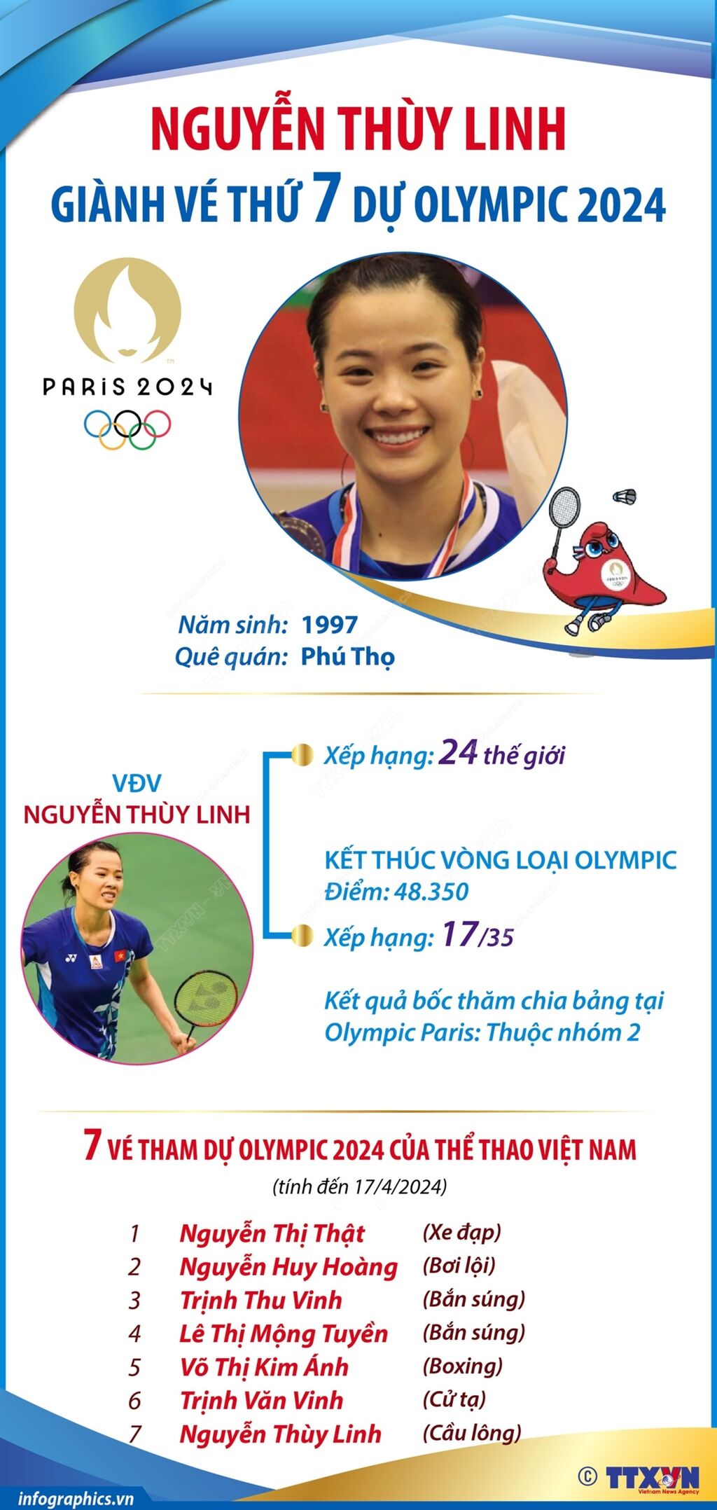 Xếp thứ 1 Chung kết nhóm B hạng cân nam 61 kg ở Giải Cử tạ thế giới 2024 tổ chức tại Thái Lan từ ngày 31/3 - 11/4/2024, Đô cử Trịnh Văn Vinh mang về tấm vé dự Olympic Paris 2024 thứ 6 cho thể thao Việt Nam.