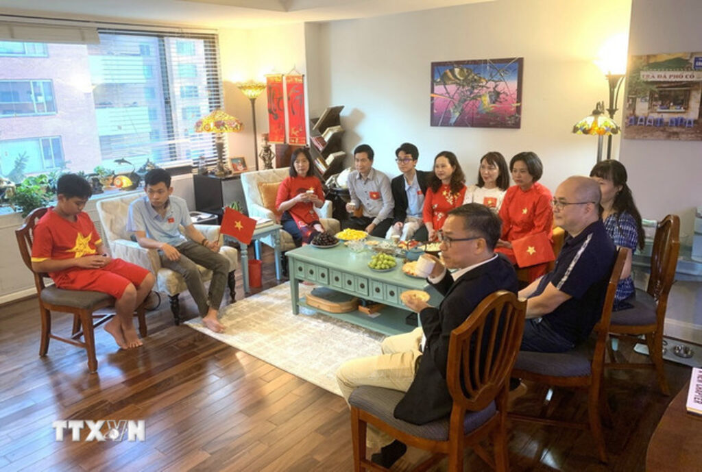 | Đồng bào Việt kiều theo dõi truyền hình trực tiếp Lễ kỷ niệm, diễu binh, diễu hành 80 năm Quốc khánh 2/9. |