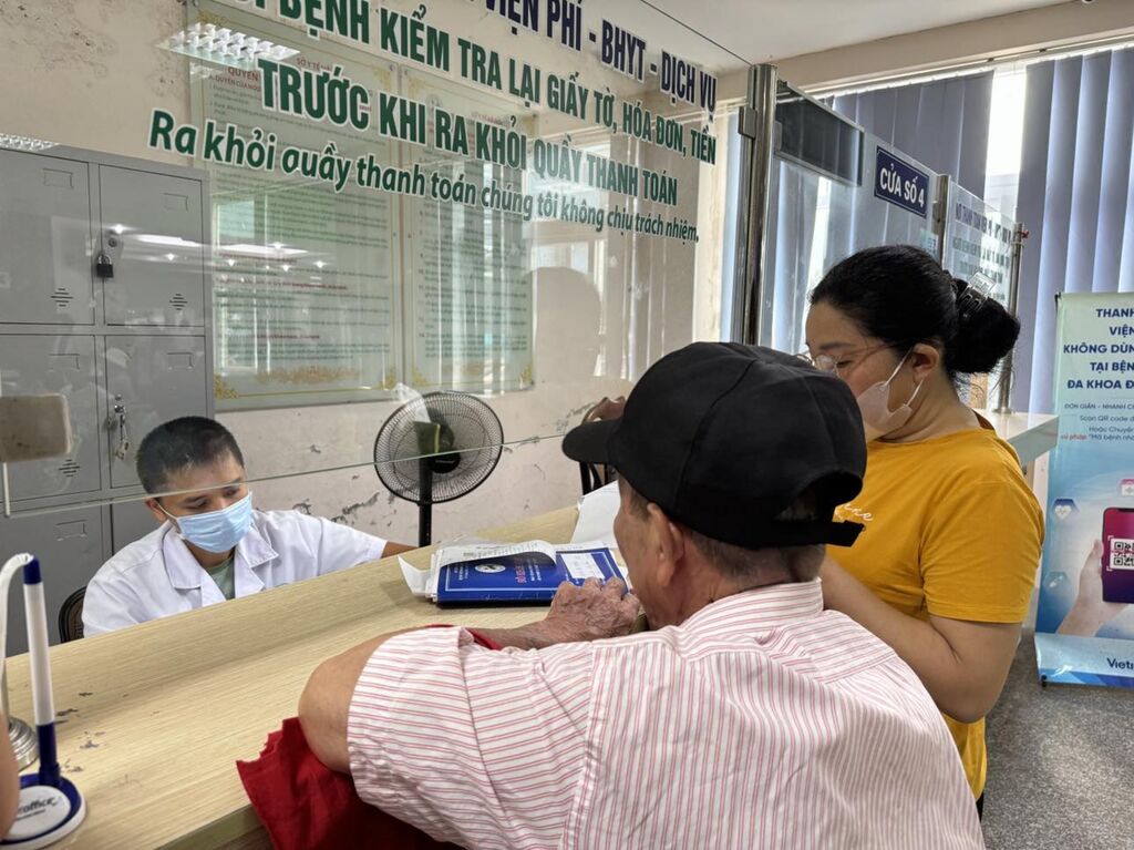 | Người dân thanh toán khi đi khám bệnh bằng BHYT. |