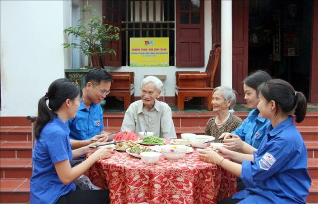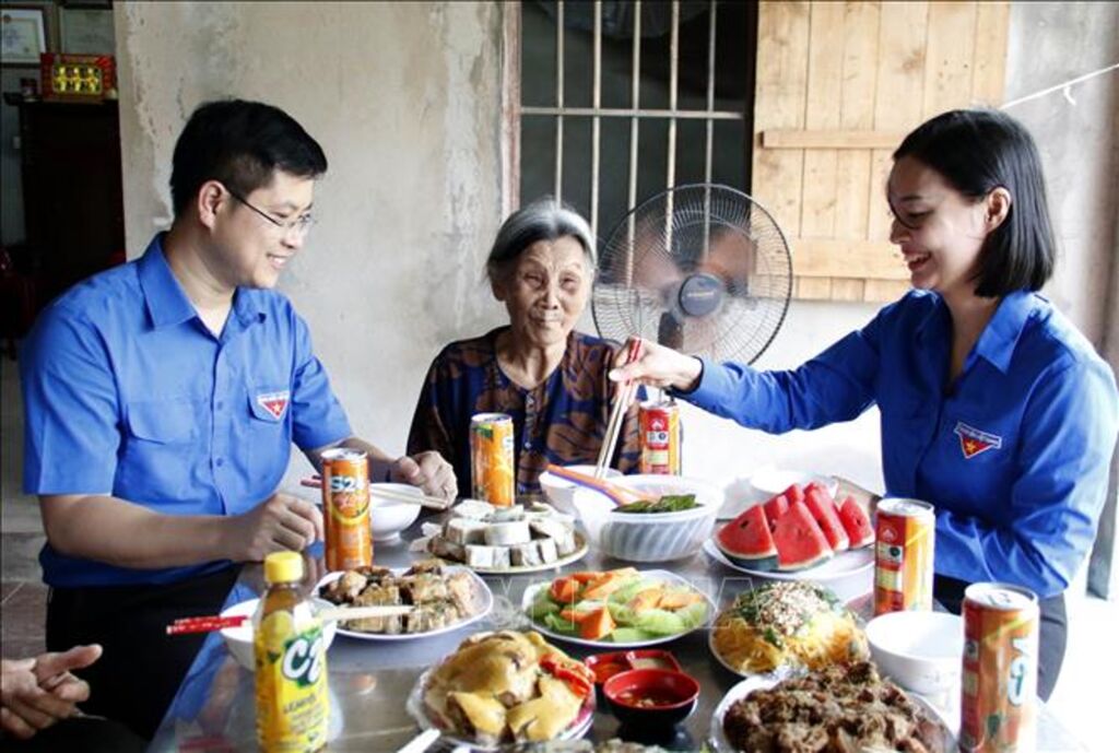 Đến cuối buổi chiều, ngôi nhà của cụ Sáu đã được các đoàn viên, thanh niên dọn dẹp sạch sẽ, gọn gàng; mâm cơm nóng hổi, tươm tất được dọn ra. Bên mâm cơm, trong không khí ấm cúng, thân tình, các bạn trẻ đã ân cần hỏi thăm sức khỏe, động viên tinh thần và lắng nghe cụ Sáu chia sẻ những câu chuyện về cuộc sống thời kháng chiến. Cụ Sáu cho biết, sau khi chồng hy sinh, các con khôn lớn lấy vợ lấy chồng, cụ sống một mình. Hôm nay, cụ rất vui và xúc động khi được các đoàn viên, thanh niên đến dọn dẹp nhà cửa, trò truyện và cùng nấu cơm, ăn cơm trong không khí ấm cúng.