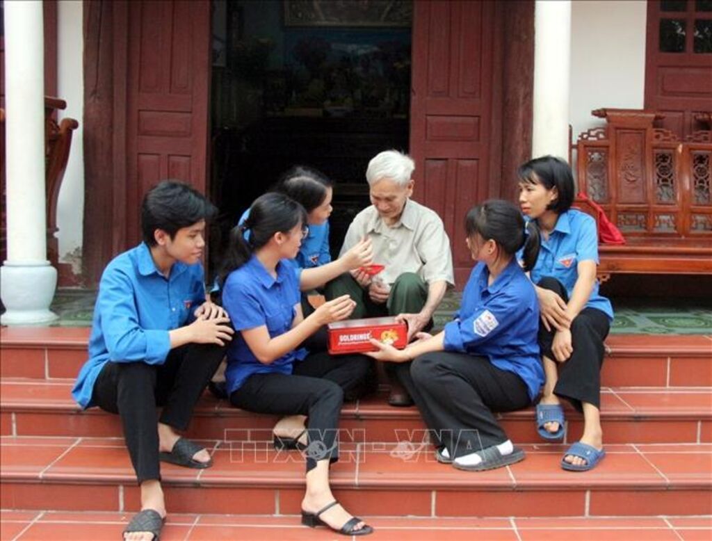 Một buổi chiều giữa tháng 7, ngôi nhà đơn sơ tại thôn Hạ, xã Đức Giang, huyện Yên Dũng của cụ Nguyễn Thị Sáu (93 tuổi, vợ liệt sỹ) rộn vang tiếng nói cười vui vẻ của các đoàn viên, thanh niên. Tập trung ở nhà cụ Sáu từ sớm, các bạn trẻ đã phân công nhau mỗi người một việc, người dọn vườn, quét nhà, người nhặt rau, nấu cơm…