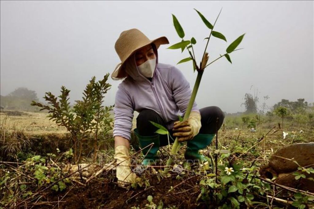 | Người dân xã Phiêng Luông, huyện Mộc Châu, tỉnh Sơn La trồng tre Bát Độ từ nguồn được hỗ trợ. |