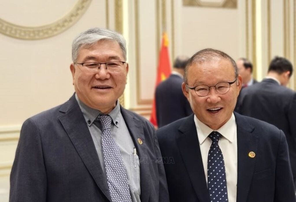 | GS Bae Yang Soo (trái) chụp cùng HLV Park Hang Seo tại Tiệc chiêu đãi cấp nhà nước của Tổng thống Lee Jae Myung dành cho Tổng Bí thư Tô Lâm và Phu nhân cùng Đoàn đại biểu cấp cao Việt Nam. Ảnh: TTXVN phát |
