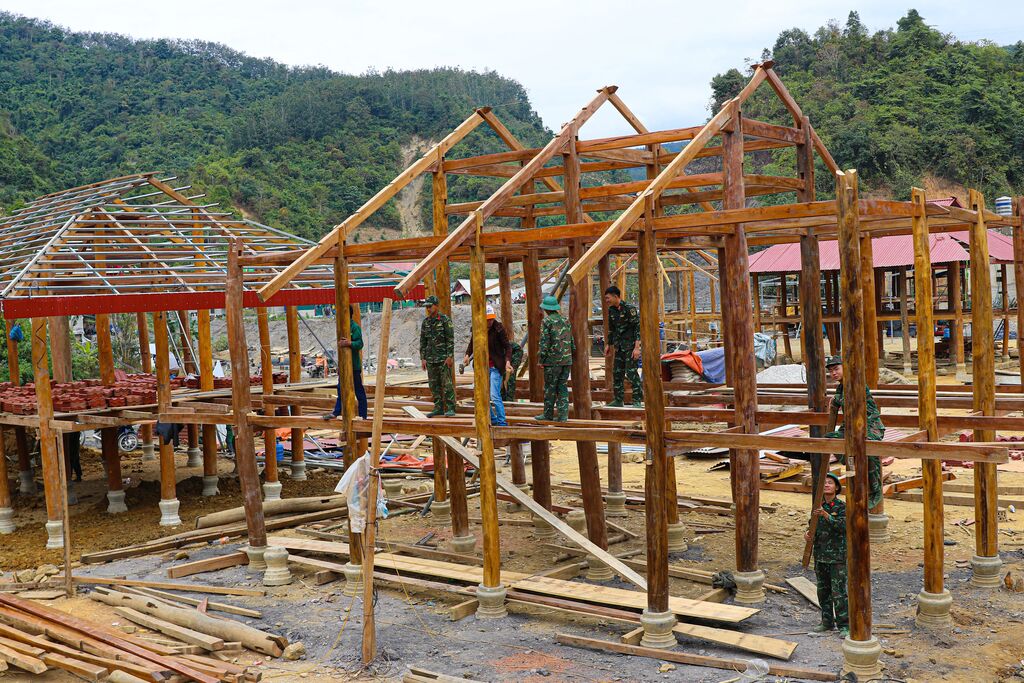 Bản Tin Tốc 1 (địa điểm xây dựng 9 ngôi nhà sàn và 2 ngôi nhà xây do Bộ Quốc phòng hỗ trợ) là một công trường xây dựng sôi động với tiếng máy cưa, tiếng bào, đục gỗ của các chiến sỹ… Tất cả đang chạy đua với thời gian để giúp người dân sớm có ngôi nhà mới.