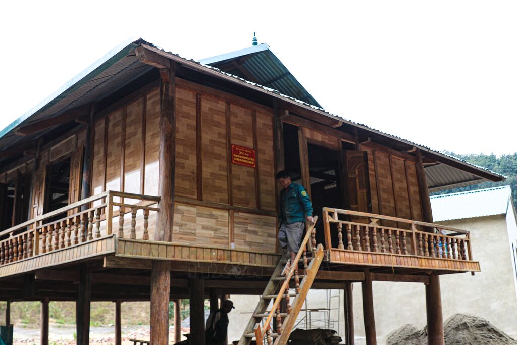 Tương tự, bản Tin Tốc 2 cũng đang hoàn thiện những khâu cuối cùng của 10 ngôi nhà do Bộ Quốc phòng hỗ trợ. Anh Lò Văn Vi (một trong 10 gia đình được hỗ trợ làm nhà) đang cùng các chiến sỹ Trung đoàn 741 tất bật hoàn thiện tường rào cho ngôi nhà sàn. Anh Vi chia sẻ, trận lũ quét vào cuối tháng 7/2024 khiến gia đình anh lâm vào cảnh “màn trời, chiếu đất”. Mất mát về vật chất và tinh thần khiến cuộc sống của gia đình anh càng thêm vất vả. Anh được Bộ Quốc phòng quan tâm hỗ trợ 50 triệu đồng, cùng với số tiền của gia đình, sau hơn một tháng với sự giúp đỡ tận tình của các cán bộ, chiến sỹ Trung đoàn 741, đến nay căn nhà mới của anh đã được hoàn thành khang trang, sạch đẹp.