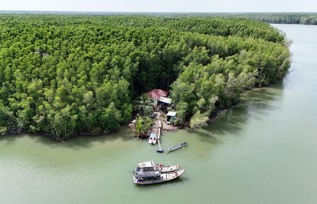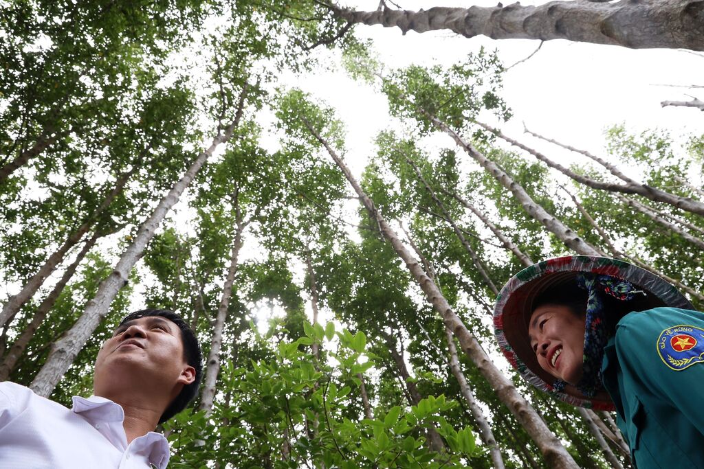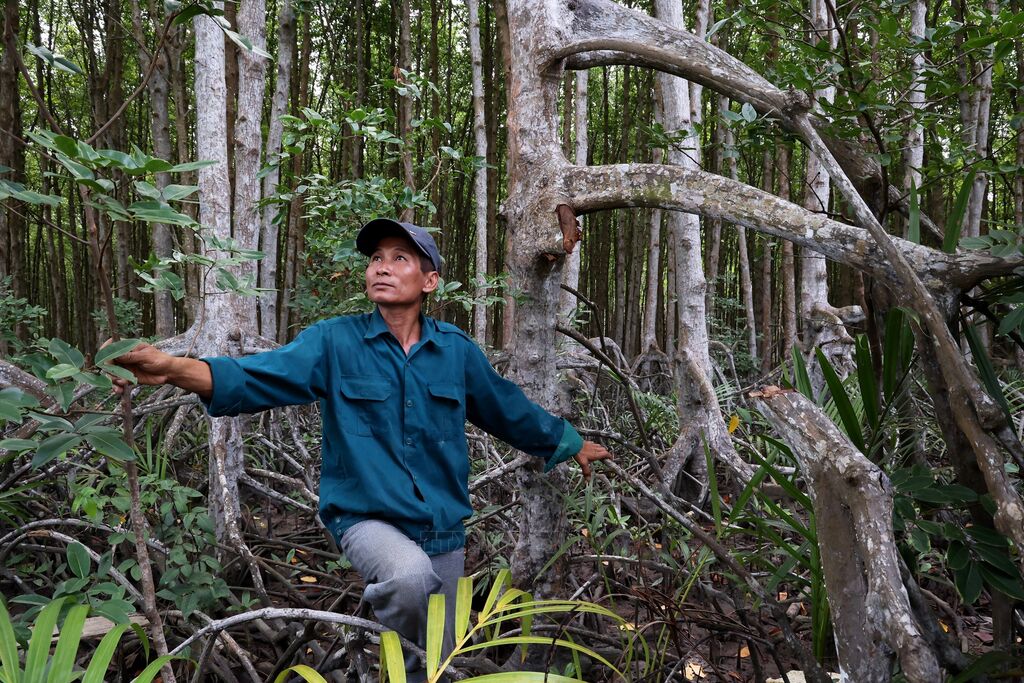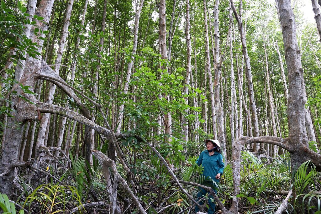 Rừng ngập mặn Cần Giờ hôm nay được hồi sinh diệu kỳ sau gần nửa thế kỷ phục hồi, phát triển và được xem là “bể carbon xanh, lá phổi xanh” làm nên bức tường xanh vững chắc bảo vệ môi trường cho Thành phố Hồ Chí Minh và các địa phương lân cận. Điều đó có được từ những quyết sách đúng đắn của Đảng bộ, Chính quyền Thành phố suốt gần nửa thế kỷ qua (từ năm 1978 đến nay), nỗ lực của các cấp, ngành, những cán bộ trực tiếp làm công tác quản lý rừng, đặc biệt là những hộ dân xem rừng ngập mặn như “duyên nợ” khó có thể rời xa, gắn cuộc đời mình với “đời rừng”. Những người được giao khoán bảo vệ rừng luôn tự hào với công việc gìn giữ “lá phổi xanh” cho thế hệ mai sau. Ảnh: Hồng Đạt - TTXVN
