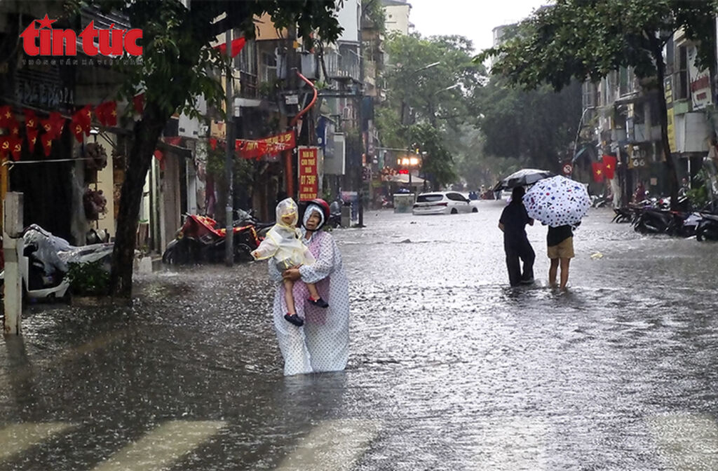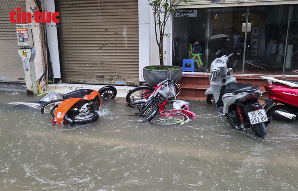 | Hình ảnh ngập lụt ở một tuyến phố Hà Nội. Ảnh: Lê Phú |
