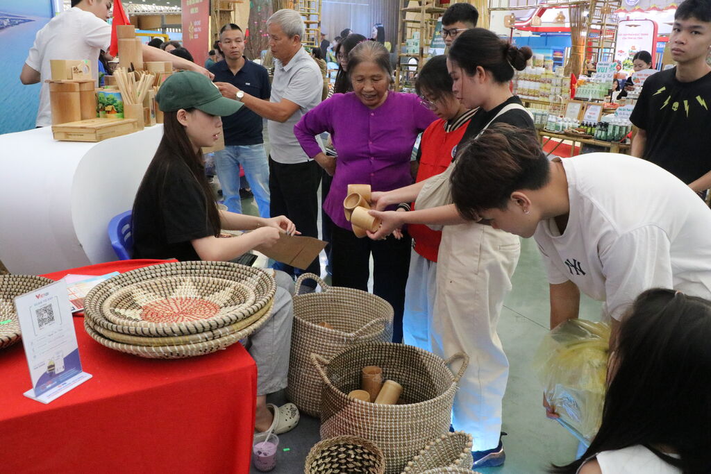 | Quầy hàng thủ công mỹ nghệ OCOP tại gian hàng của tỉnh Thanh Hóa được nhiều khách hàng quan tâm |