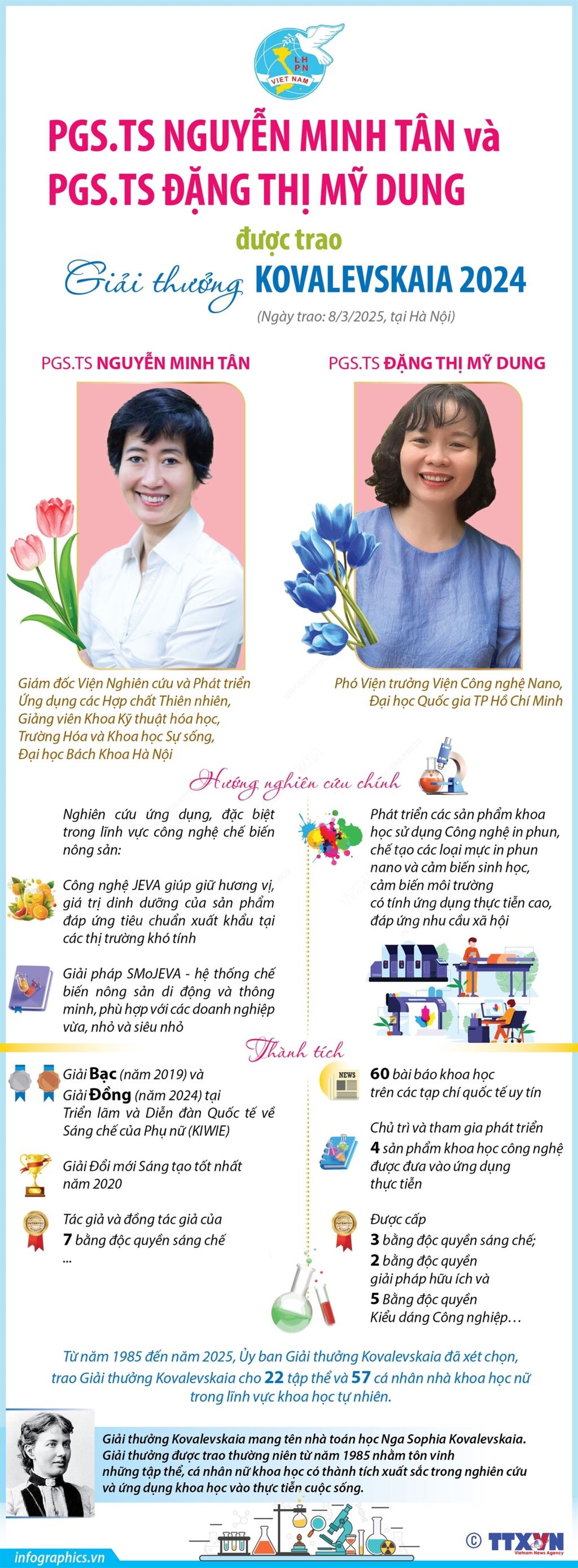 | PGS.TS Nguyễn Minh Tân và PGS.TS Đặng Thị Mỹ Dung được trao Giải thưởng Kovalevskaia năm 2024 |