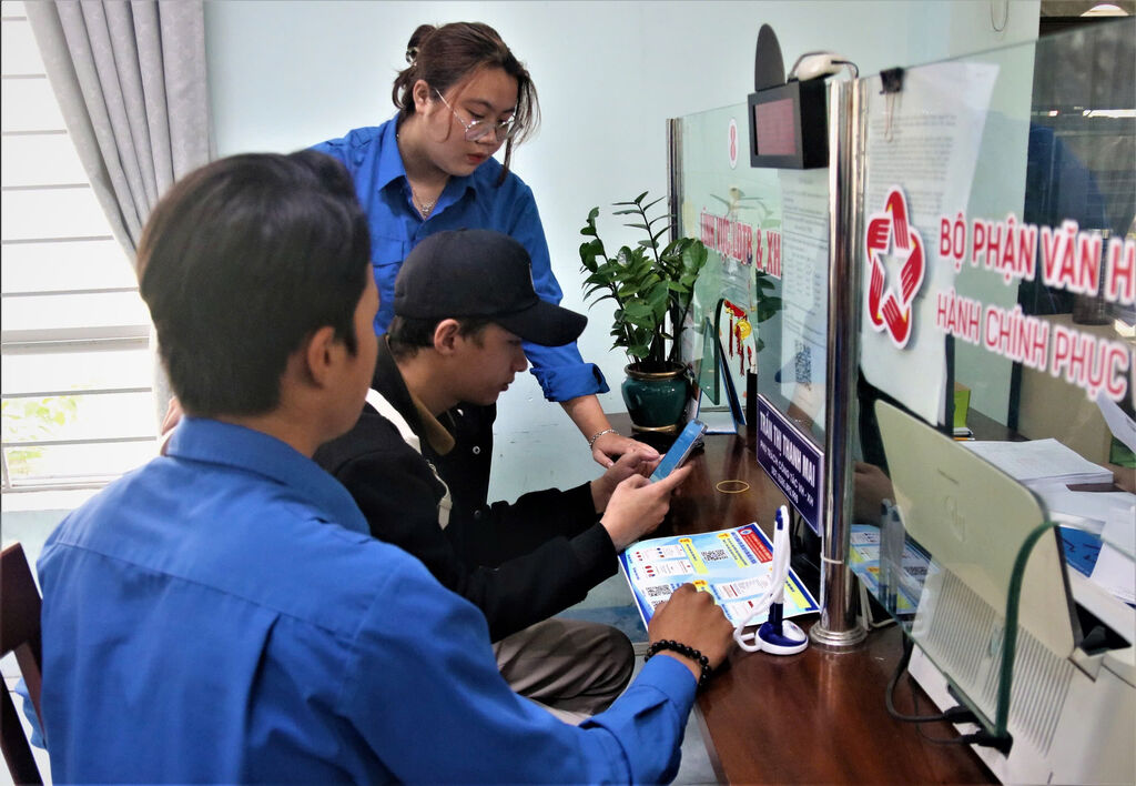 | Các Đoàn viên Tổ công nghệ số cộng đồng và Đề án 06 tích cực hỗ trợ người dân về nền tảng số. |