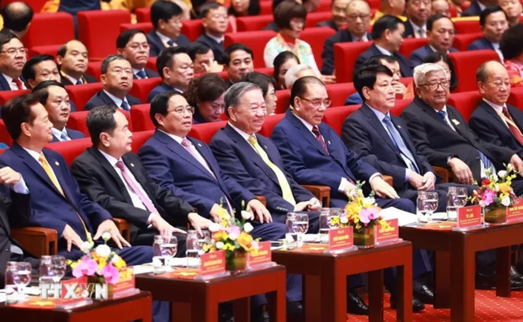 | Tổng Bí thư, Chủ tịch nước Tô Lâm, Thủ tướng Phạm Minh Chính, Chủ tịch Quốc hội Trần Thanh Mẫn cùng các lãnh đạo, nguyên lãnh đạo Đảng, Nhà nước dự phiên khai mạc trọng thể Đại hội X Mặt trận Tổ quốc Việt Nam. |