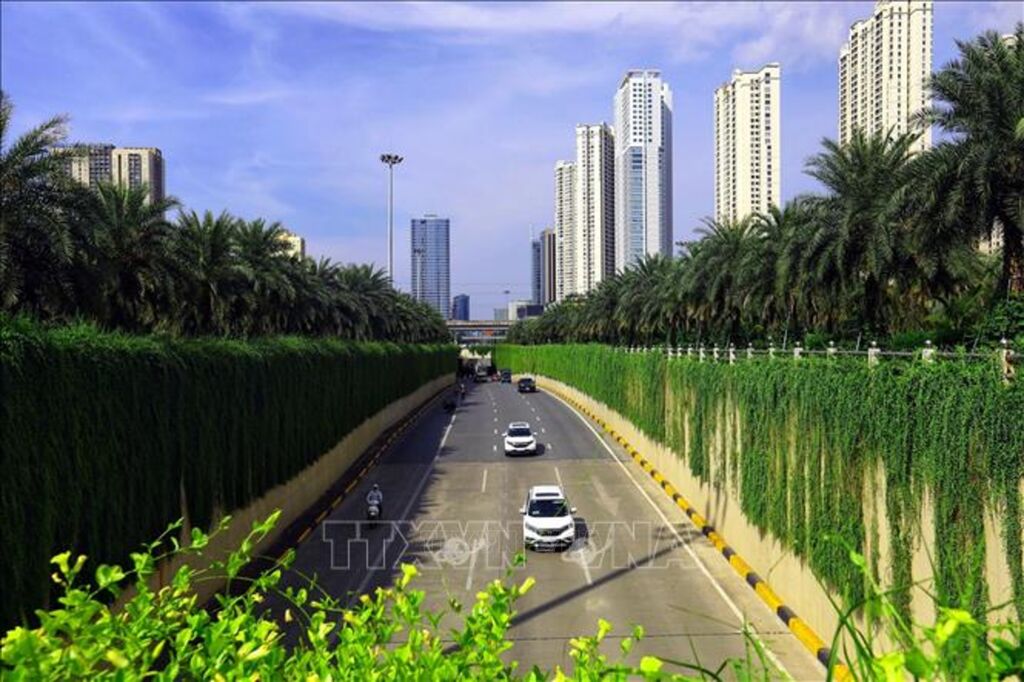 | Cây xanh phủ dọc hầm chui Trung Hòa giúp làm dịu không khí. |