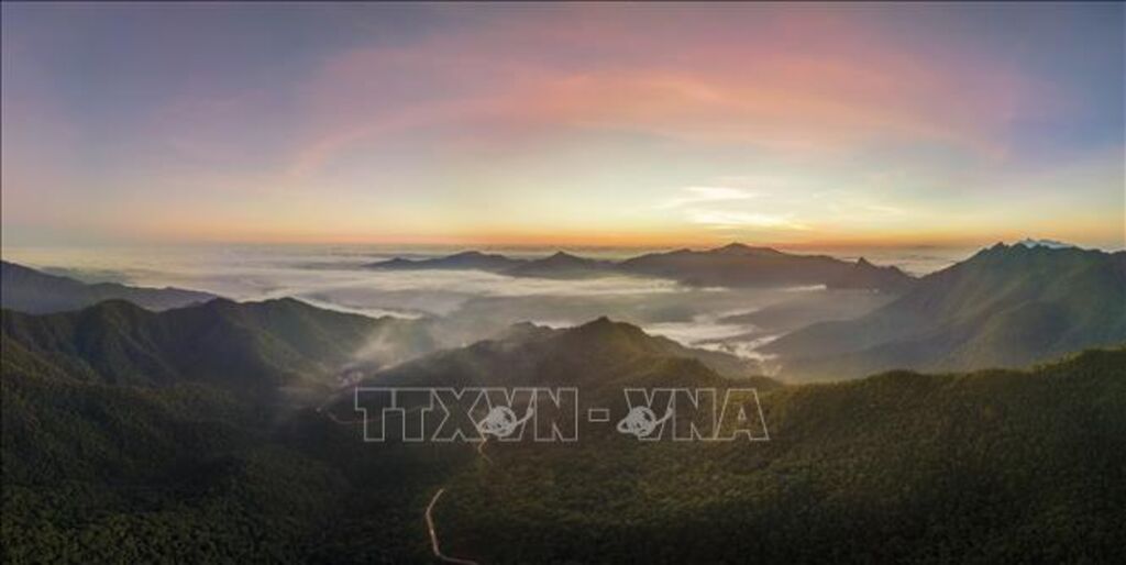 | Bình minh ở Khu dự trữ thiên nhiên Động Châu - Khe Nước Trong, tỉnh Quảng Bình. |