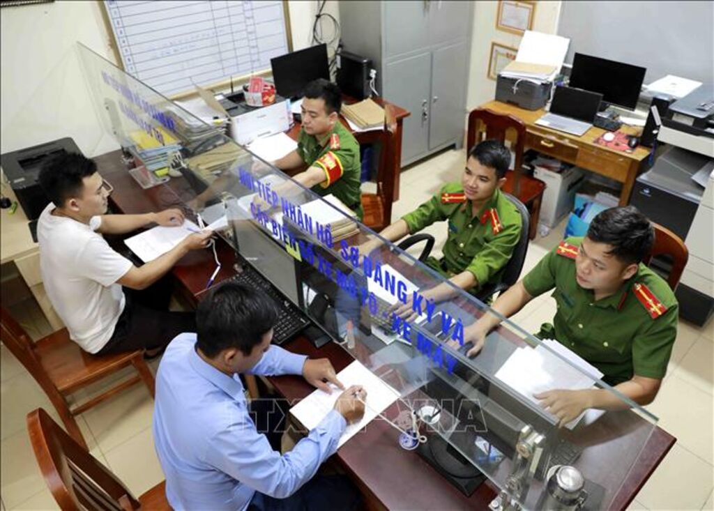 | Người dân thực hiện thủ tục hành chính tại xã Yên Dương, huyện Tam Đảo, tỉnh Vĩnh Phúc. |