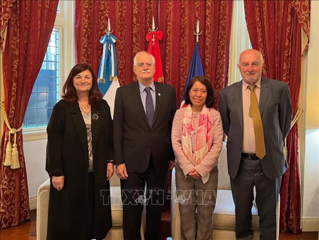 | Đại sứ Việt Nam tại Argentina Ngô Minh Nguyệt tiếp ông Jorge Taiana, Trưởng ban Quan hệ quốc tế Đảng Công lý (PJ), cựu Bộ trưởng Quốc phòng và Ngoại giao Argentina. |