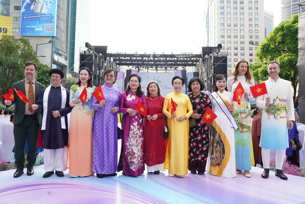 | Lãnh đạo Thành phố Hồ Chí Minh cùng các đại sứ của Lễ hội Áo dài năm 2025. |