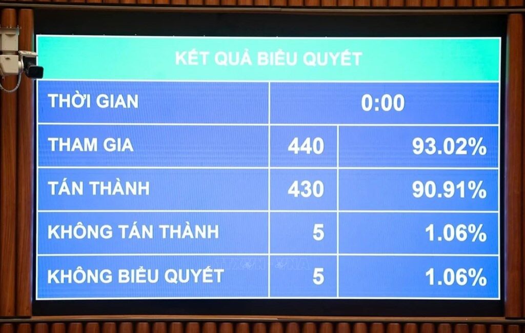 Tiếp tục chương trình Kỳ họp thứ 10, Quốc hội khóa XV, sáng 11/12, với đa số đại biểu tham gia biểu quyết tán thành, Quốc hội đã biểu quyết thông qua Nghị quyết phê duyệt chủ trương đầu tư Chương trình mục tiêu quốc gia về xây dựng nông thôn mới, giảm nghèo bền vững và phát triển kinh tế - xã hội vùng đồng bào dân tộc thiểu số, miền núi giai đoạn 2026 – 2035 với 430/440 đại biểu có mặt tán thành, chiếm 90,91% tổng số đại biểu Quốc hội.