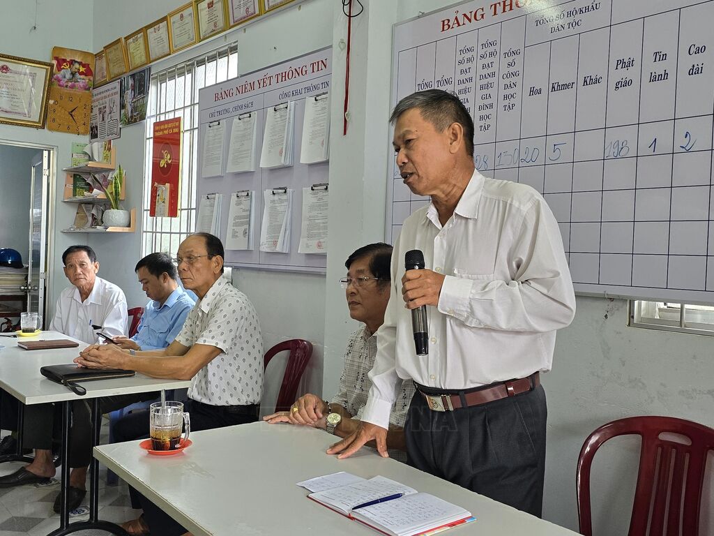 | Đảng viên Lâm Thanh Hiền phát biểu tại buổi sinh hoạt Chi bô khóm 5, phường 1, thành phố Cà Mau, tỉnh Cà Mau. |