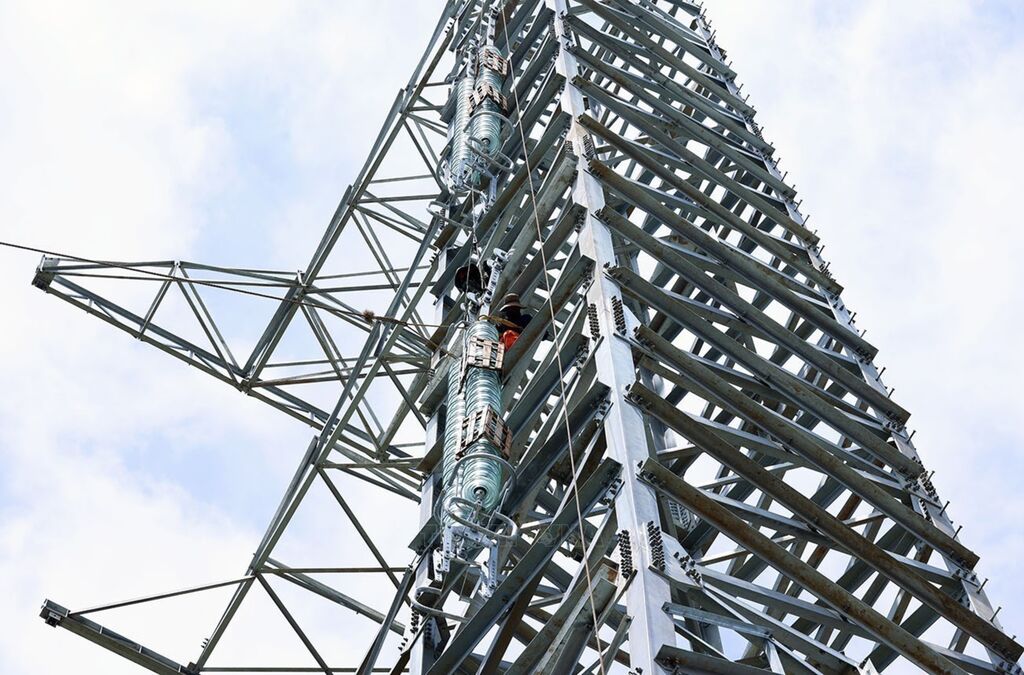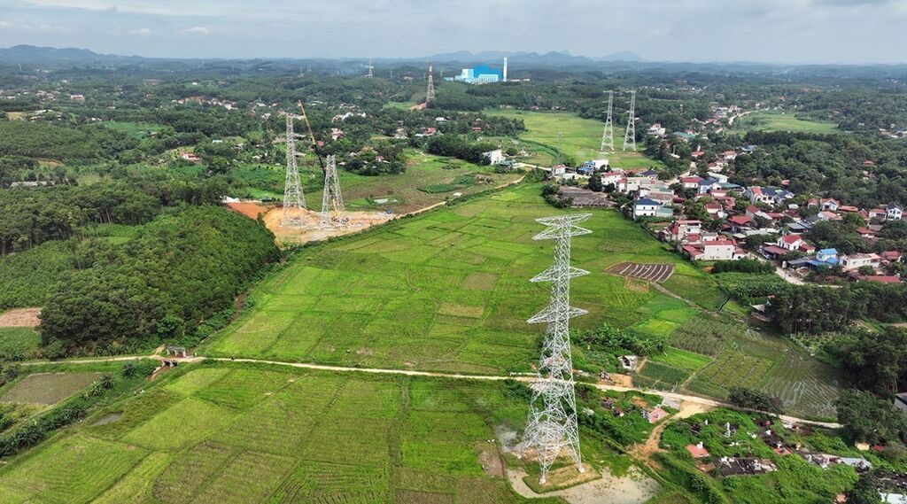 Dự án đường dây truyền tải điện siêu cao áp 500kV Lào Cai – Vĩnh Yên có tổng mức đầu tư hơn 7.410 tỷ đồng, chiều dài toàn tuyến 229,5 km, đi qua 31 xã của 2 tỉnh (13 xã thuộc tỉnh Lào Cai và 18 xã thuộc tỉnh Phú Thọ). Trong đó, đoạn thuộc tỉnh Lào Cai dài 139,66 km, đoạn thuộc tỉnh Phú Thọ dài 89,84 km. Dự án hiện đang đi vào giai đoạn thi công cao điểm, các nhà thầu trên toàn tuyến bám sát và đẩy nhanh tiến độ, đặc biệt là ở các vị trí có địa hình phức tạp, quyết tâm đóng điện công trình trước ngày 19/8/2025 theo đúng tiến độ Thủ tướng Chính phủ giao. Ảnh: Vũ Sinh - TTXVN