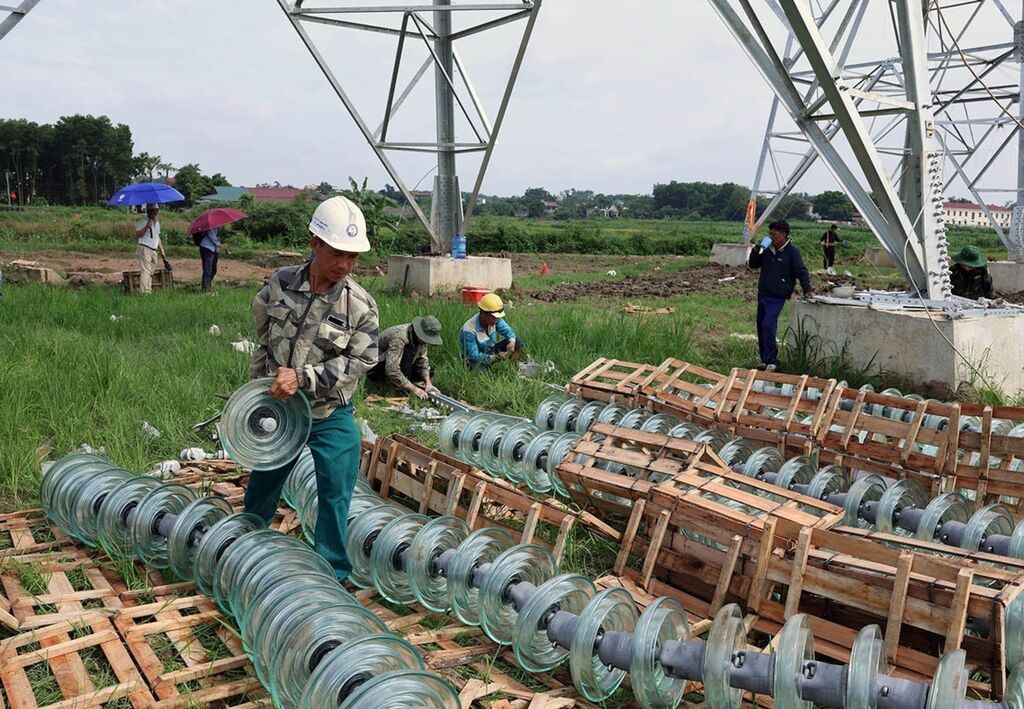 Trên công trường Dự án đường dây 500kV Lào Cai - Vĩnh Yên đoạn đi qua tỉnh Phú Thọ, ở vị trí cột số 352, xã Vũ Ninh. Ảnh: Vũ Sinh - TTXVNCông nhân Công ty Cổ phần Tập đoàn Đầu tư thương mại công nghiệp Việt Á lắp đặt sứ cách điện trước khi được treo lên vị trí cột số 352, thuộc địa bàn xã Vũ Ninh, tỉnh Phú Thọ. Ảnh: Vũ Sinh - TTXVNThi công lắp đặt các cột điện số 353, 354, 555... thuộc địa bàn xã Vũ Ninh, tỉnh Phú Thọ. Ảnh: Vũ Sinh - TTXVNTrên công trường Dự án đường dây 500kV Lào Cai - Vĩnh Yên đoạn đi qua tỉnh Phú Thọ, ở vị trí cột số 352, xã Vũ Ninh. Ảnh: Vũ Sinh - TTXVNLắp đặt trụ sứ cách điện ở vị trí trụ cột số 352, thuộc địa bàn xã Vũ Ninh, tỉnh Phú Thọ. Ảnh: Vũ Sinh - TTXVNThi công lắp đặt cột số 354, thuộc địa bàn xã Vũ Ninh, tỉnh Phú Thọ. Ảnh: Vũ Sinh - TTXVN
