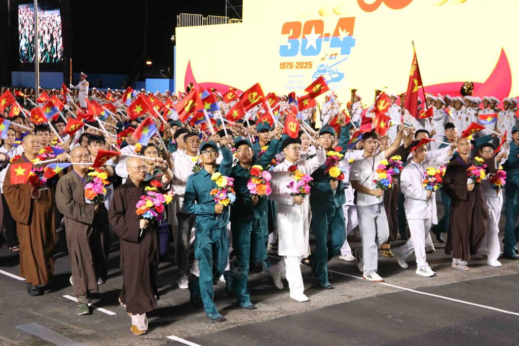 Mười hai khối diễu hành do Thành phố Hồ Chí Minh phụ trách tham dự Lễ kỷ niệm gồm: khối Tôn vinh các Anh hùng Lực lượng vũ trang nhân dân, Anh hùng Lao động, nhân chứng lịch sử tiêu biểu (diễu hành trên xe); Mặt trận Tổ quốc Việt Nam; khối Cựu chiến binh; khối Cựu thanh niên xung phong giải phóng; khối Công nhân; khối Nông dân; khối Trí thức; khối Doanh nhân; khối Đồng bào Việt Nam ở nước ngoài; khối Phụ nữ; khối Thiếu nhi và Thanh niên; khối Văn hóa - Thể thao.