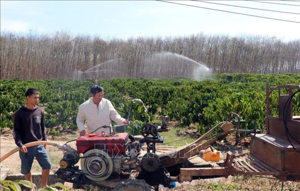 | Những ngày Xuân, người dân xã Đăk Kan huyện Ngọc Hồi chủ động bơm nước, tưới cà phê với mong muốn có thêm một mùa bội thu cà sản lượng và giá. |