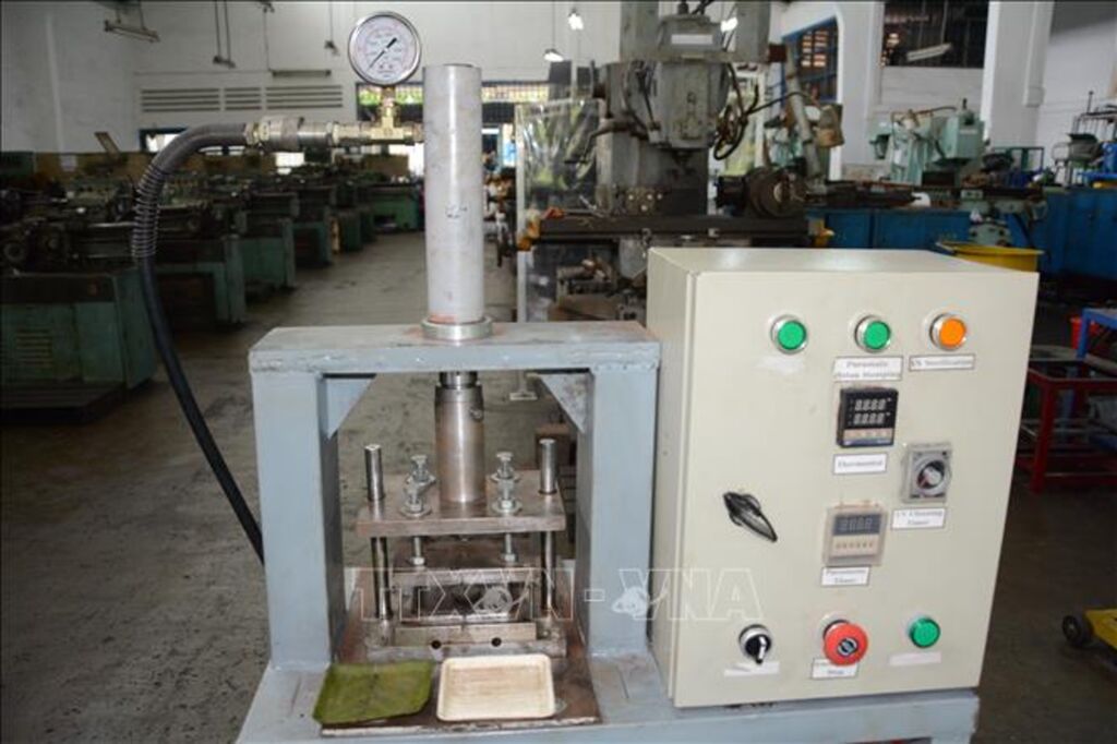 | Cận cảnh "Máy ép chén đĩa từ vật liệu thân thiện môi trường". |