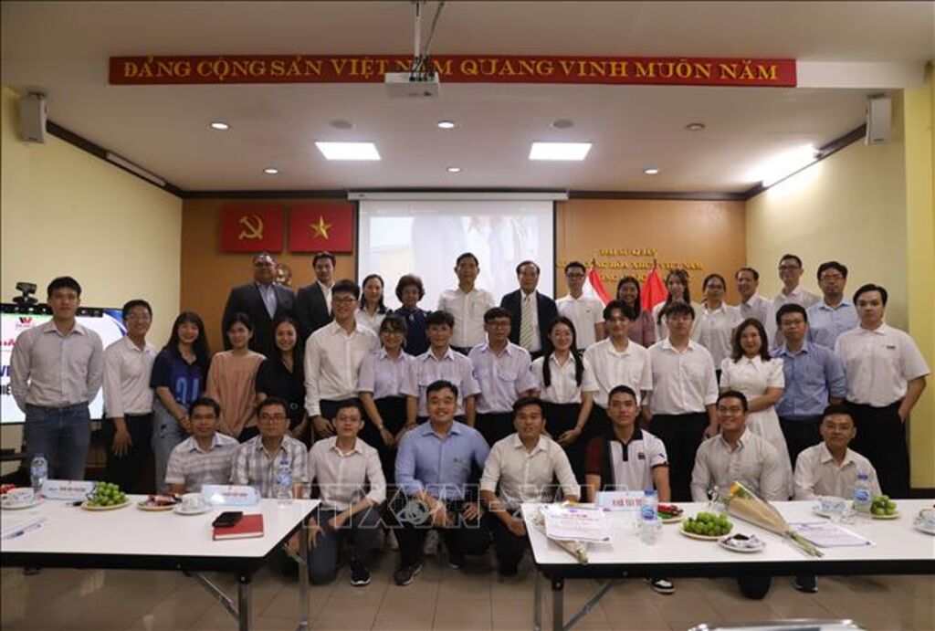| Đại sứ Phạm Việt Hùng chụp ảnh lưu niệm với Ban chấp hành Hội Sinh viên Việt Nam tại Thái Lan khóa IV - nhiệm kỳ 2025-2028. Ảnh: Đỗ Sinh/TTXVN |