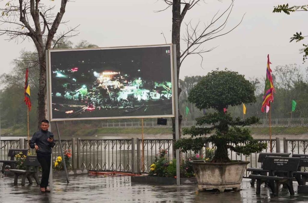 | Hệ thống kiosk cảm ứng ngoài trời 65 inch được lắp đặt tại đền ông Hoàng Mười. |