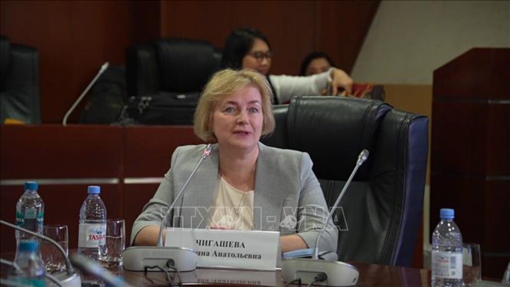 | Bà Marina Chigasheva, Trưởng bộ môn Đào tạo Ngôn ngữ tại MGIMO, phát biểu khẳng định sức hút của tiếng Việt và nhu cầu thực tế về nguồn nhân lực phiên dịch chất lượng cao tại Nga. |