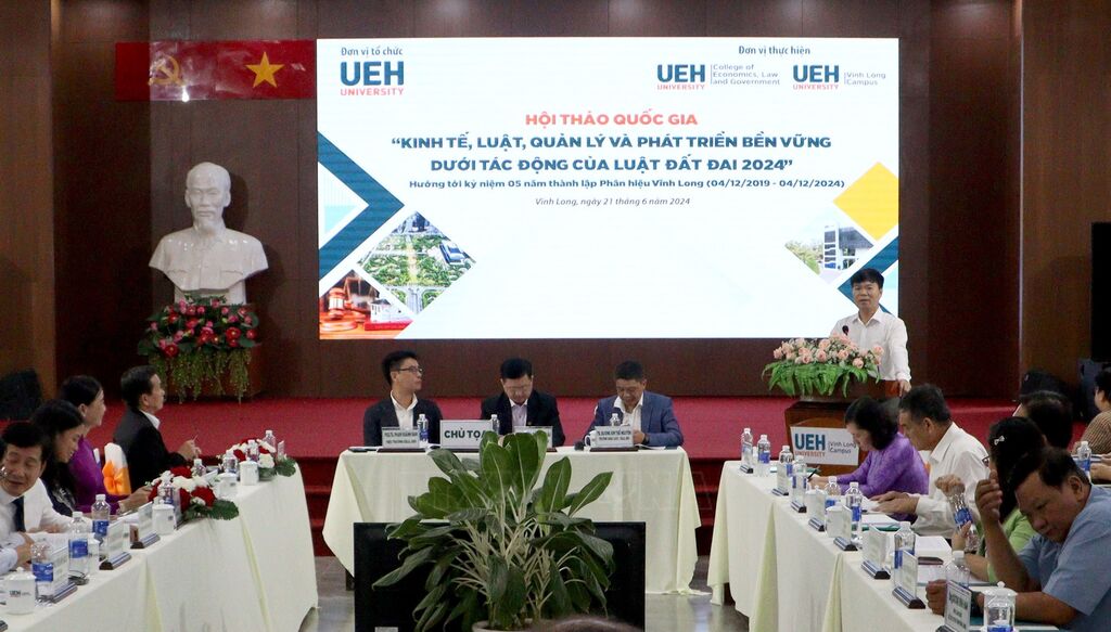 Ngày 21/6, tại Phân hiệu Vĩnh Long, Đại học Kinh tế Thành phố Hồ Chí Minh tổ chức Hội thảo quốc gia với chủ đề “Kinh tế, luật, quản lý và phát triển bền vững dưới tác động của Luật Đất đai năm 2024".