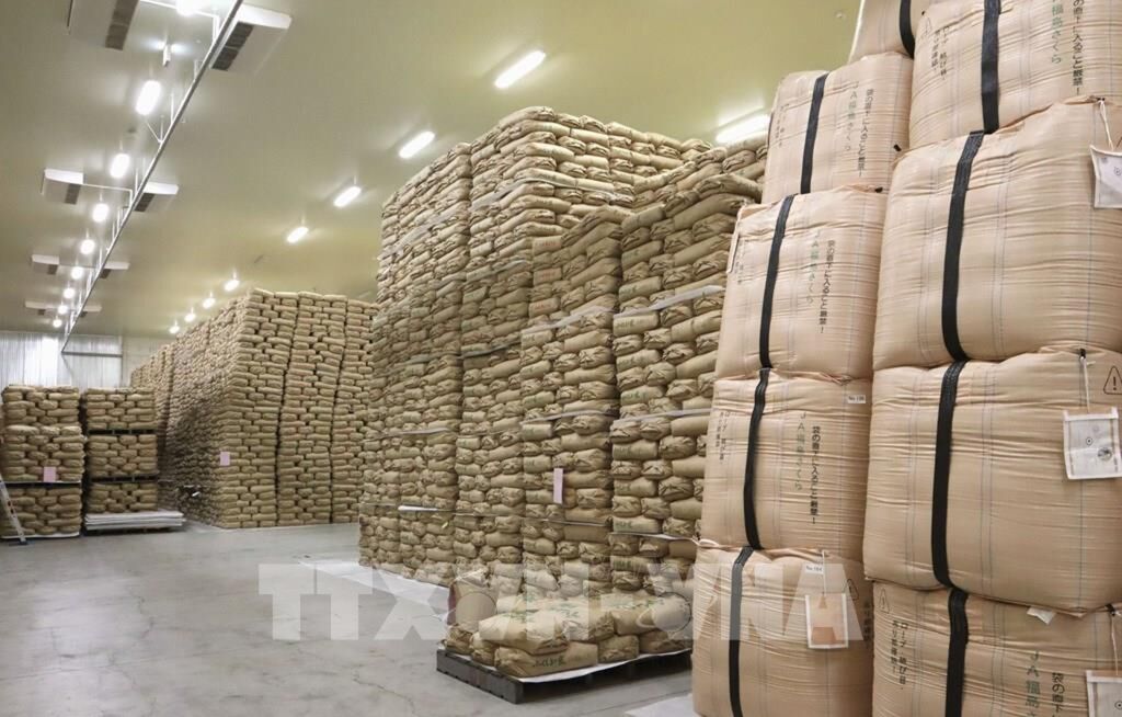 | Gạo được trữ tại nhà kho ở tỉnh Fukushima, Nhật Bản. Ảnh: Kyodo/TTXVN |