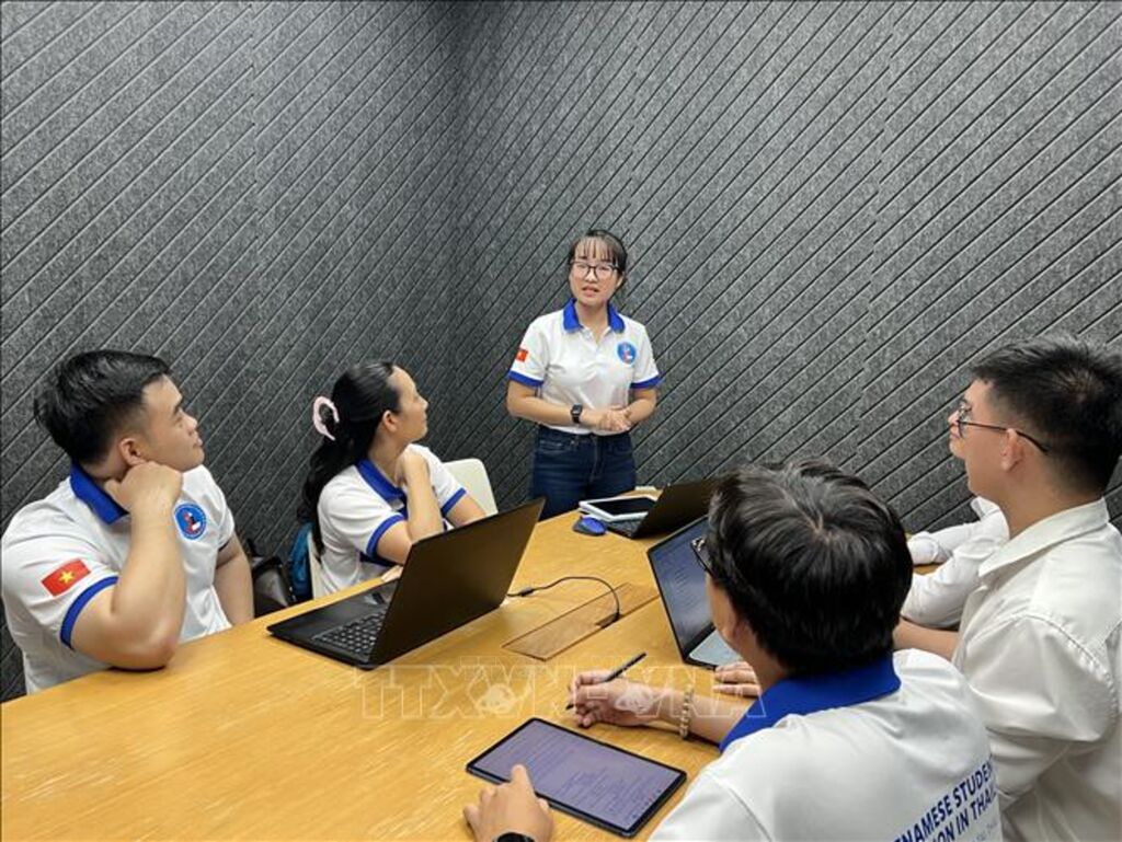| Du học sinh từ các ngành học khác nhau tại Đại học Chulalongkorn (Thái Lan) đóng góp ý kiến với dự thảo Văn kiện Đại hội XIV. |