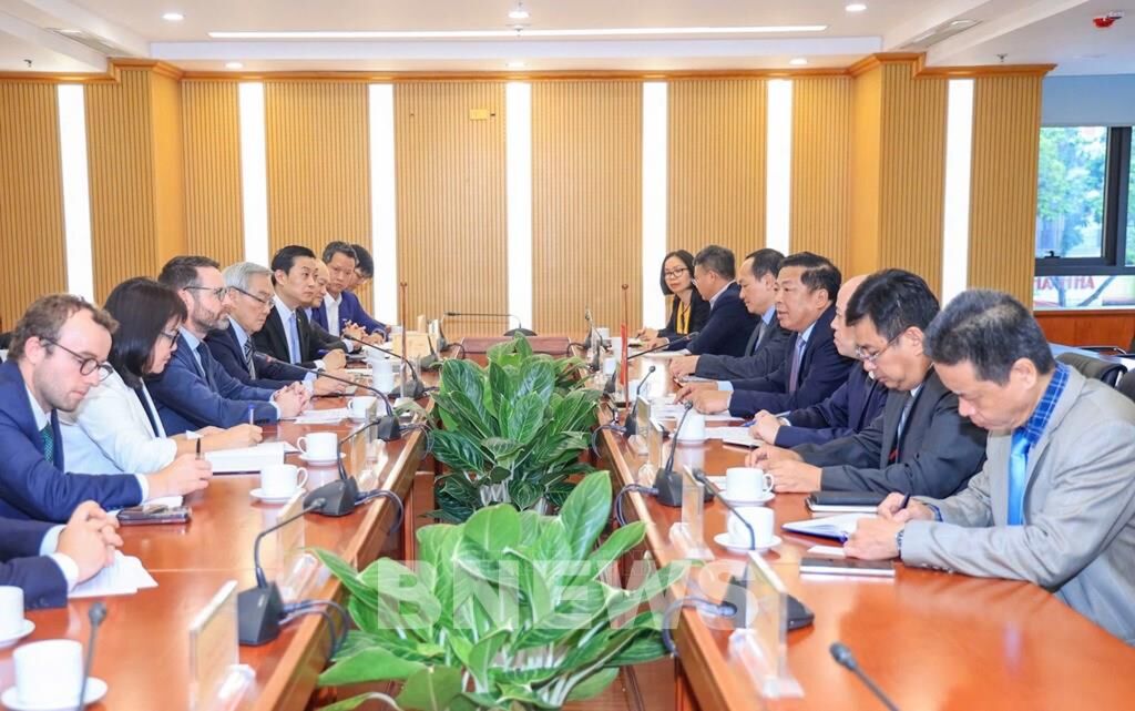 | Bộ trưởng Bộ Xây dựng Trần Hồng Minh đã tiếp và làm việc với Đại sứ Vương quốc Anh tại Việt Nam Iain Frew. Ảnh: Bnews/Vnanet.vn phát |