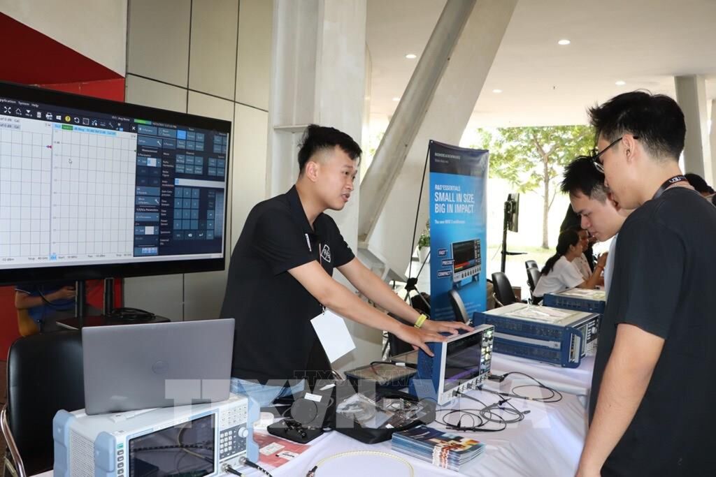 | Đông đảo khách tham quan gian hàng triển lãm sản phẩm, nguyên vật liệu ngành vi mạch bán dẫn tại Hội thảo quốc tế và triển lãm sản phẩm, nguyên vật liệu ngành vi mạch bán dẫn năm 2025. |