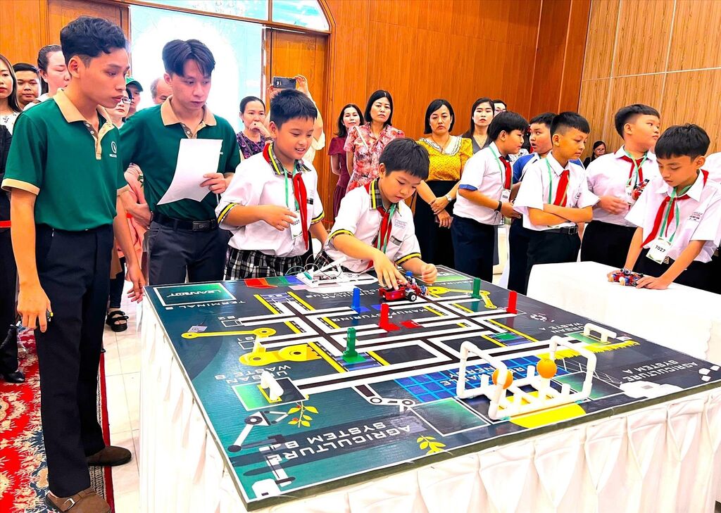 | Học sinh Tiểu học tại Cần Thơ tham gia các cuộc thi lập trình robot hoàn toàn bằng tiếng Anh. |