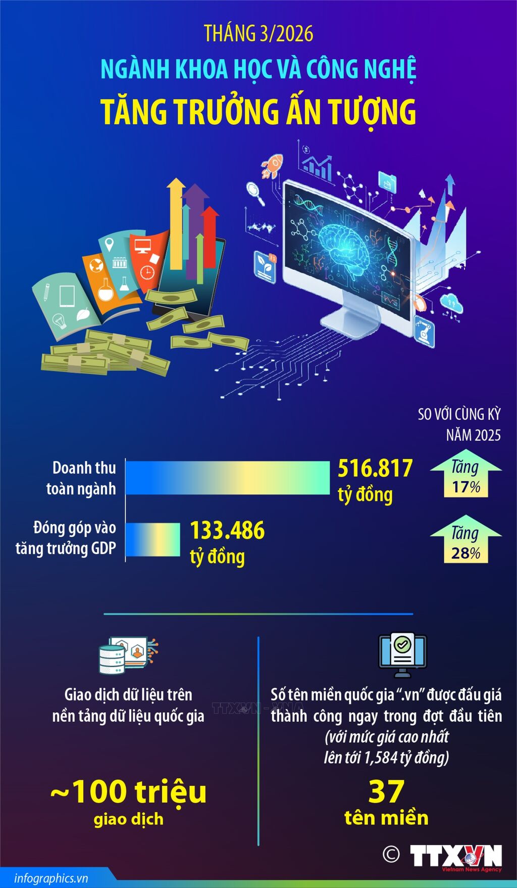 | Tháng 3/2026, ngành khoa học và công nghệ tăng trưởng ấn tượng |