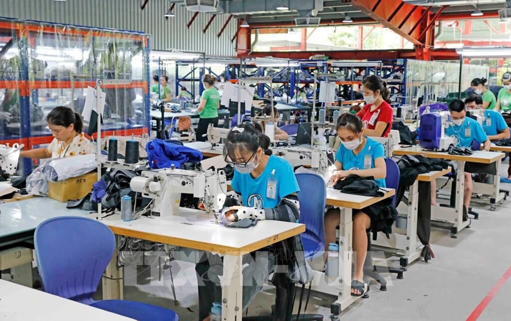 | Sản xuất hàng dệt may xuất khẩu. Ảnh: Trần Việt - TTXVN |