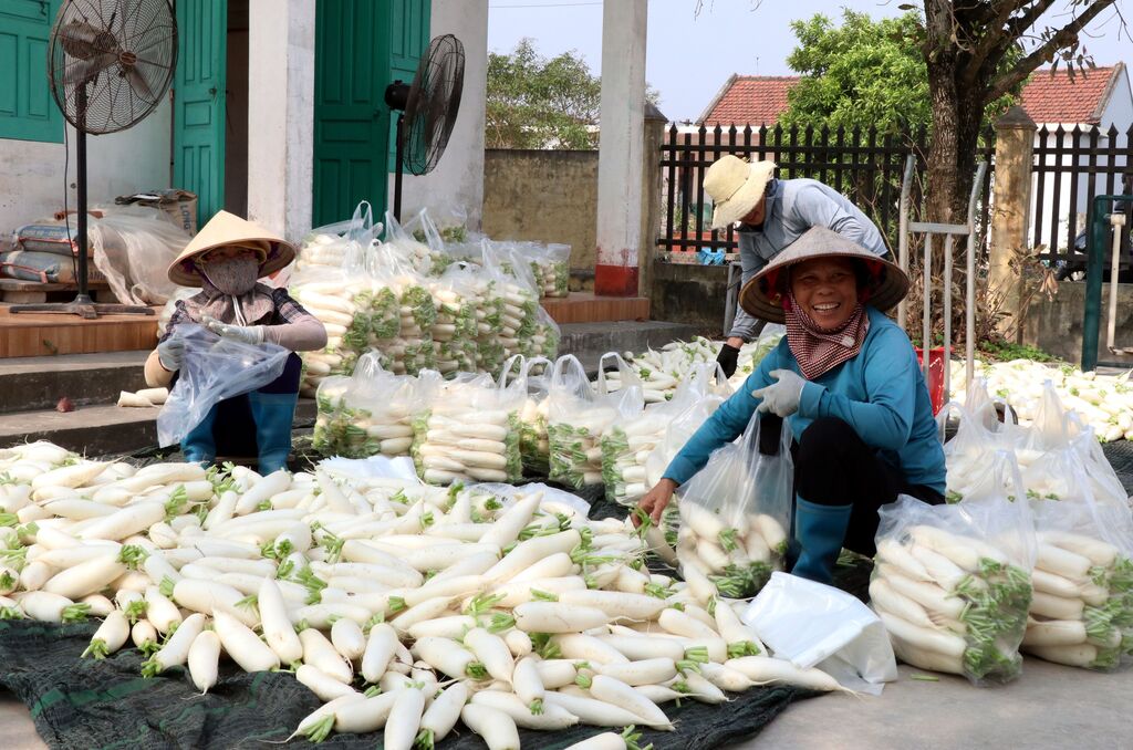 | Củ cải được mùa với năng suất 278 tạ/ha, giá củ cải cao gấp đôi mọi năm khiến bà con xã Giao Ninh (tỉnh Ninh Bình) rất phấn khởi. |