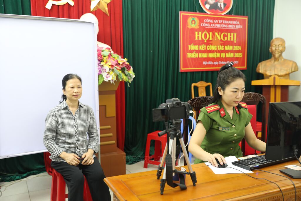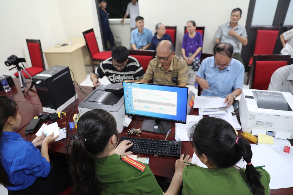Để hoàn thành cấp đổi thẻ đảng viên cho 100% đảng viên chính thức, Công an tỉnh Thanh Hóa đang gấp rút triển khai thu nhận dữ liệu đảng viên, chú trọng ở các khu vực có đông đảng viên cao tuổi, vùng khó khăn. Ảnh: Hoa Mai - TTXVN