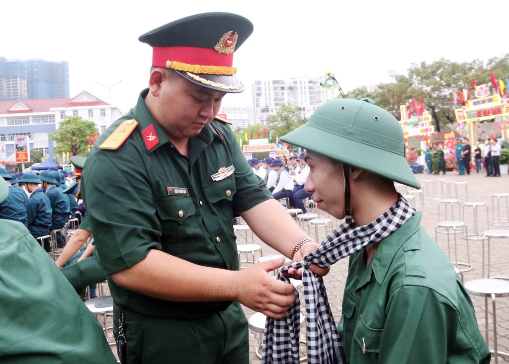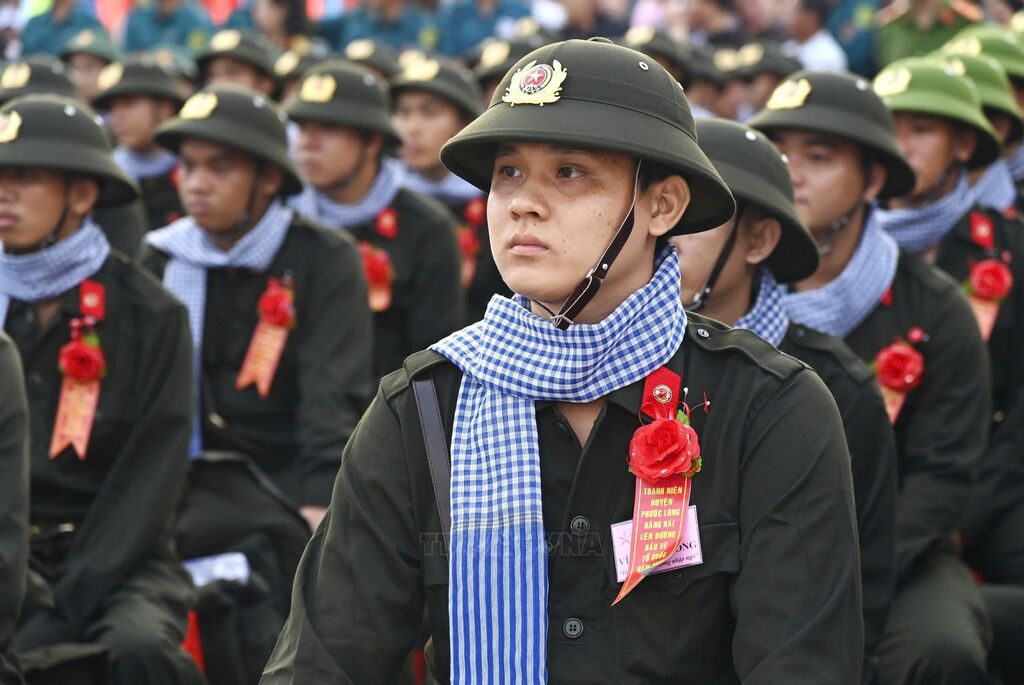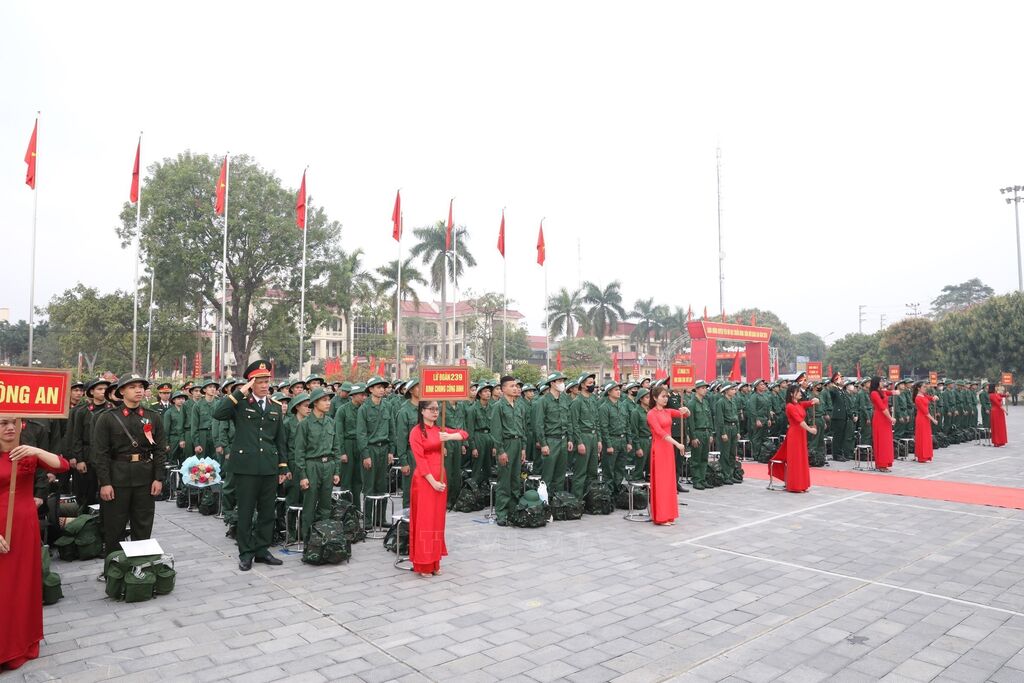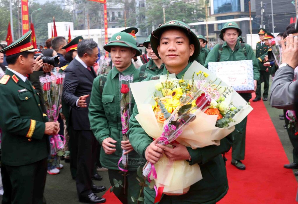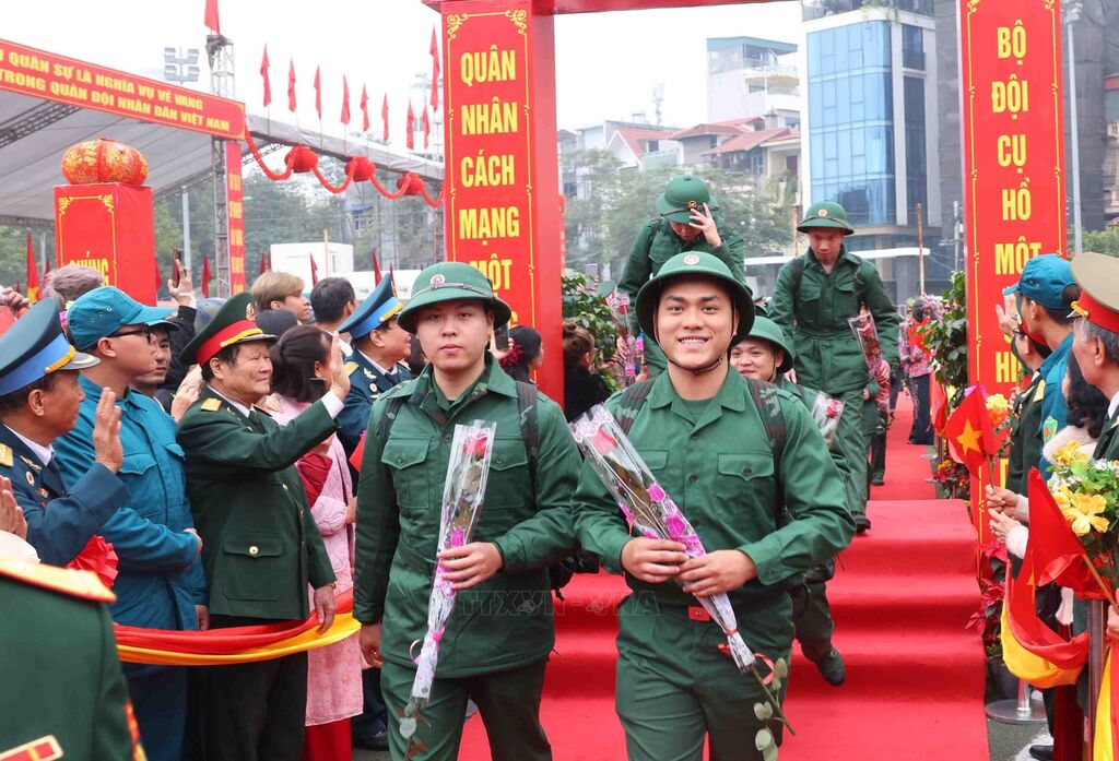 Năm 2025, quận Hai Bà Trưng (Hà Nội) tuyển chọn và gọi nhập ngũ 102 công dân. Ảnh: Thanh Tùng - TTXVNNgười thân tiễn thanh niên lên đường đường làm nhiệm vụ bảo vệ Tổ quốc (Hà Nội, 13/2/2025). Ảnh: Thanh Tùng - TTXVNBà Nguyễn Thị Minh Thuận (90 tuổi) tiễn cháu lên đường thực hiện nghĩa vụ Công an nhân dân tại điểm giao, nhận quân Quận Đống Đa, Hà Nội. Ảnh: Phạm Kiên - TTXVNCác tân binh phấn khởi lên đường nhập ngũ tại điểm giao, nhận quân Quận Đống Đa, Hà Nội. Ảnh: Phạm Kiên - TTXVNCác tân binh phấn khởi lên đường nhập ngũ tại điểm giao, nhận quân Quận Đống Đa, Hà Nội. Ảnh: Phạm Kiên - TTXVNThượng tướng Hoàng Xuân Chiến, Thứ trưởng Bộ Quốc phòng, tặng hoa cho tân binh lên đường nhập ngũ (Hưng Yên, 13/2/2025). Ảnh: Đinh Văn Nhiều-TTXVNCác tân binh Long An ngày nhập ngũ. Ảnh: Thanh Bình -TTXVNHuyện Yên Mô, tỉnh Ninh Bình có 269 tân binh lên đường nhập ngũ năm 2025. Ảnh: Đức Phương - TTXVNNiềm vui của các tân binh huyện Yên Mô lên đường nhận nhiệm vụ. Ảnh: Đức Phương - TTXVNChủ tịch UBND huyện Sông Lô (Vĩnh Phúc) Nguyễn Thành Chung động viên thanh niên lên đường nhập ngũ. Ảnh: Hoàng Hùng -TTXVNCác tân binh Bạc Liêu tươi cười tạm biệt hậu phương bước qua Cổng Vinh quang, lên đường nhập ngũ. Ảnh: Chanh Đa-TTXVNTân binh Bạc Liêu sẵn sàng lên đường nhập ngũ. Ảnh: Chanh Đa-TTXVNCác thanh niên thành phố Lạng Sơn bước qua Cổng Vinh quang tại Lễ giao, nhận quân năm 2025. Ảnh: Anh Tuấn – TTXVNCác tân binh thành phố Hài Phòng lên đường nhập ngũ. Ảnh: Hoàng Ngọc - TTXVNTrung tướng Trương Thiên Tô, Phó Chủ nhiệm Tổng cục Chính trị QĐND Việt Nam, động viên thanh niên tại thành phố Tuy Hòa (Phú Yên) lên đường nhập ngũ. Ảnh: Xuân Triệu - TTXVNThanh niên thành phố Cao Bằng chia tay gia đình lên đường nhập ngũ. Ảnh: Chu Hiệu-TTXVNTỷ lệ chiến sĩ mới tại Quân khu V đạt sức khỏe loại 1, loại 2 chiếm hơn 50,1%. Ảnh: Quốc Dũng - TTXVNCác chiến sĩ phấn khởi lên đường nhận nhiệm vụ tại Lễ giao nhận quân 2025 của Quân khu V. Ảnh: Quốc Dũng - TTXVNCác tân binh chào người thân trước khi lên đường nhập ngũ tại Lễ giao nhận quân 2025 của Quân khu V. Ảnh: Quốc Dũng - TTXVNTặng khăn cho các tân binh lên đường nhập ngũ (TP Hồ Chí Minh, 13/2/2025). Ảnh: Xuân Khu - TTXVN2 nữ thanh niên Thành phố Hồ Chí Minh xung phong lên đường nhập ngũ. Ảnh: Xuân Khu - TTXVNTiễn các tân binh lên đường nhập ngũ (Hòa Bình, 13/2/2025). Ảnh: Trọng Đạt - TTXVN
