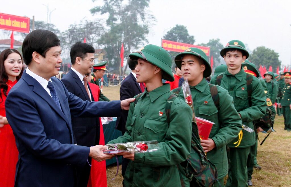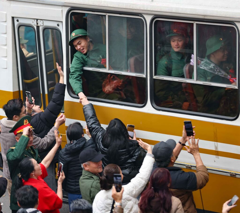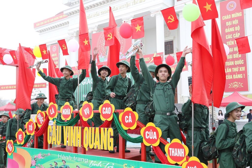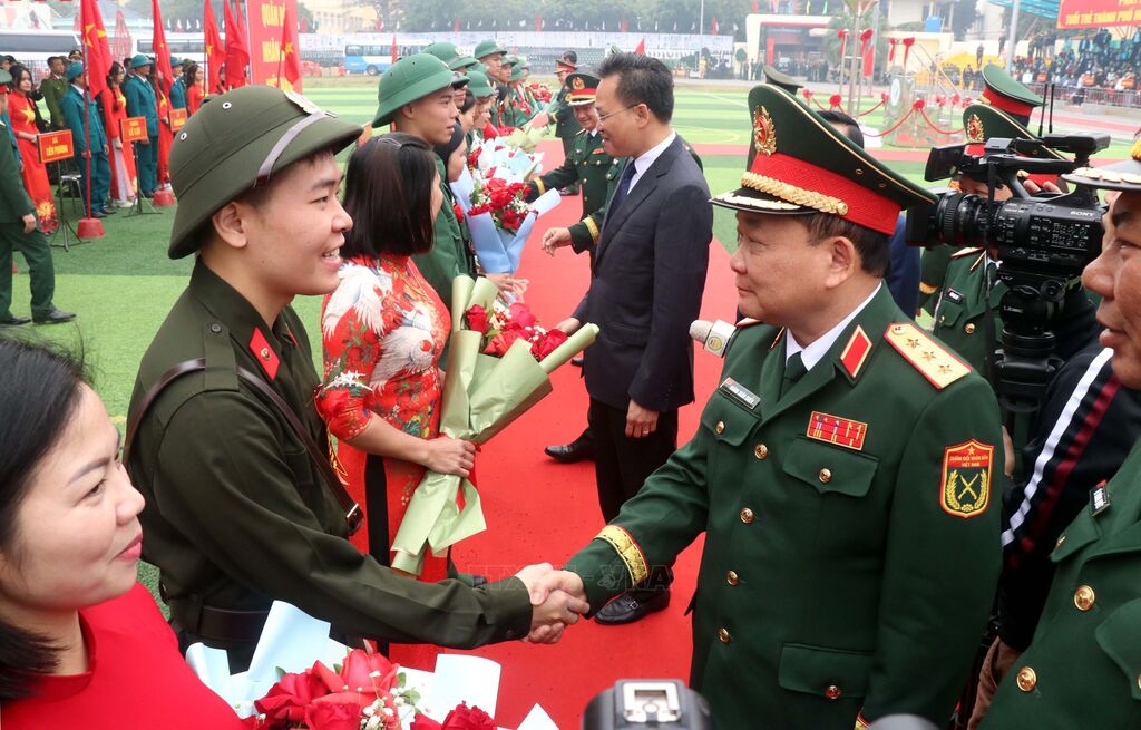 Năm 2025, quận Hai Bà Trưng (Hà Nội) tuyển chọn và gọi nhập ngũ 102 công dân. Ảnh: Thanh Tùng - TTXVNNgười thân tiễn thanh niên lên đường đường làm nhiệm vụ bảo vệ Tổ quốc (Hà Nội, 13/2/2025). Ảnh: Thanh Tùng - TTXVNBà Nguyễn Thị Minh Thuận (90 tuổi) tiễn cháu lên đường thực hiện nghĩa vụ Công an nhân dân tại điểm giao, nhận quân Quận Đống Đa, Hà Nội. Ảnh: Phạm Kiên - TTXVNCác tân binh phấn khởi lên đường nhập ngũ tại điểm giao, nhận quân Quận Đống Đa, Hà Nội. Ảnh: Phạm Kiên - TTXVNCác tân binh phấn khởi lên đường nhập ngũ tại điểm giao, nhận quân Quận Đống Đa, Hà Nội. Ảnh: Phạm Kiên - TTXVNThượng tướng Hoàng Xuân Chiến, Thứ trưởng Bộ Quốc phòng, tặng hoa cho tân binh lên đường nhập ngũ (Hưng Yên, 13/2/2025). Ảnh: Đinh Văn Nhiều-TTXVNCác tân binh Long An ngày nhập ngũ. Ảnh: Thanh Bình -TTXVNHuyện Yên Mô, tỉnh Ninh Bình có 269 tân binh lên đường nhập ngũ năm 2025. Ảnh: Đức Phương - TTXVNNiềm vui của các tân binh huyện Yên Mô lên đường nhận nhiệm vụ. Ảnh: Đức Phương - TTXVNChủ tịch UBND huyện Sông Lô (Vĩnh Phúc) Nguyễn Thành Chung động viên thanh niên lên đường nhập ngũ. Ảnh: Hoàng Hùng -TTXVNCác tân binh Bạc Liêu tươi cười tạm biệt hậu phương bước qua Cổng Vinh quang, lên đường nhập ngũ. Ảnh: Chanh Đa-TTXVNTân binh Bạc Liêu sẵn sàng lên đường nhập ngũ. Ảnh: Chanh Đa-TTXVNCác thanh niên thành phố Lạng Sơn bước qua Cổng Vinh quang tại Lễ giao, nhận quân năm 2025. Ảnh: Anh Tuấn – TTXVNCác tân binh thành phố Hài Phòng lên đường nhập ngũ. Ảnh: Hoàng Ngọc - TTXVNTrung tướng Trương Thiên Tô, Phó Chủ nhiệm Tổng cục Chính trị QĐND Việt Nam, động viên thanh niên tại thành phố Tuy Hòa (Phú Yên) lên đường nhập ngũ. Ảnh: Xuân Triệu - TTXVNThanh niên thành phố Cao Bằng chia tay gia đình lên đường nhập ngũ. Ảnh: Chu Hiệu-TTXVNTỷ lệ chiến sĩ mới tại Quân khu V đạt sức khỏe loại 1, loại 2 chiếm hơn 50,1%. Ảnh: Quốc Dũng - TTXVNCác chiến sĩ phấn khởi lên đường nhận nhiệm vụ tại Lễ giao nhận quân 2025 của Quân khu V. Ảnh: Quốc Dũng - TTXVNCác tân binh chào người thân trước khi lên đường nhập ngũ tại Lễ giao nhận quân 2025 của Quân khu V. Ảnh: Quốc Dũng - TTXVNTặng khăn cho các tân binh lên đường nhập ngũ (TP Hồ Chí Minh, 13/2/2025). Ảnh: Xuân Khu - TTXVN2 nữ thanh niên Thành phố Hồ Chí Minh xung phong lên đường nhập ngũ. Ảnh: Xuân Khu - TTXVNTiễn các tân binh lên đường nhập ngũ (Hòa Bình, 13/2/2025). Ảnh: Trọng Đạt - TTXVN