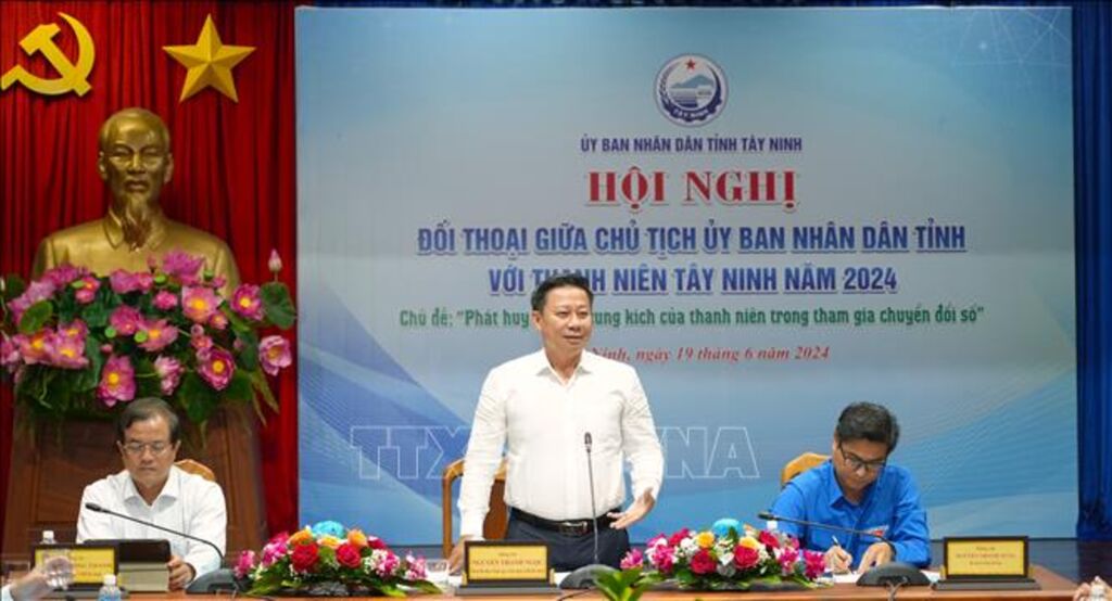 Chiều 19/6, UBND tỉnh Tây Ninh tổ chức Hội nghị đối thoại trực tiếp kết hợp trực tuyến giữa Chủ tịch UBND tỉnh và thanh niên năm 2024 với chủ đề “Phát huy vai trò xung kích của thanh niên trong tham gia chuyển đổi số”.
