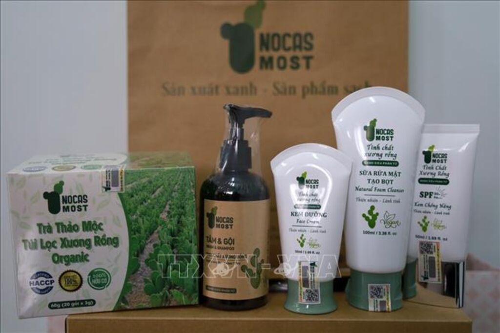 | Các sản phẩm từ xương rồng: Dầu tắm gội, kem chống nắng, sửa rửa mặt, kem dưỡng và trà thảo mộc thương hiệu NOCAS MOST được bán trên thị trường. |
