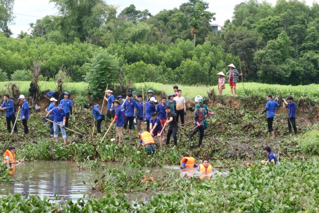 | Thanh niên Đà Nẵng tham gia tôn tạo cảnh quan, khơi thông lối thoát nước thôn Trước Đông, xã Hòa Nhơn, huyện Hòa Vang (thành phố Đà Nẵng). |