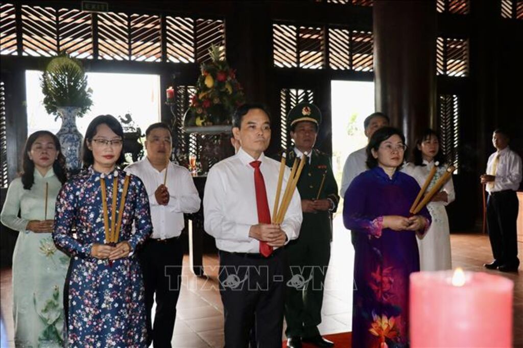 | Ủy viên Bộ Chính trị, Bí thư Thành ủy Thành phố Hồ Chí Minh Trần Lưu Quang dâng hương viếng Đức Lễ Thành Hầu Nguyễn Hữu Cảnh trong khuôn viên lịch sử văn hóa dân tộc, phường Long Bình. |