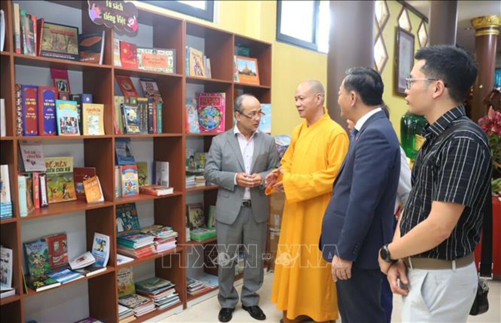 Kết thúc buổi làm việc, Đoàn đại biểu Ủy ban Nhà nước về người Việt Nam ở nước ngoài đã tới thăm tủ sách tiếng Việt tại chùa Phật Tích. Đây là một không gian nhỏ nhằm phục vụ việc học tập, tra cứu và tìm hiểu văn hóa, lịch sử Việt Nam cho cộng đồng người Việt, đặc biệt là thế hệ trẻ sinh ra và lớn lên tại Lào./.